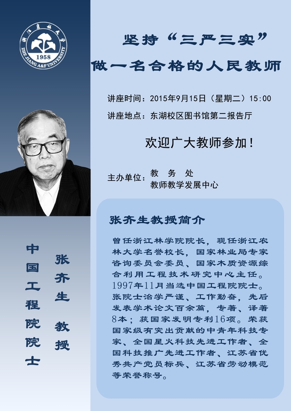张齐生院士报告:坚持“三严三实”,做一名合格的人民教师