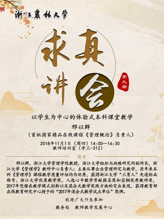 “求真讲会”第九期:以学生为中心的体验式本科课堂教学