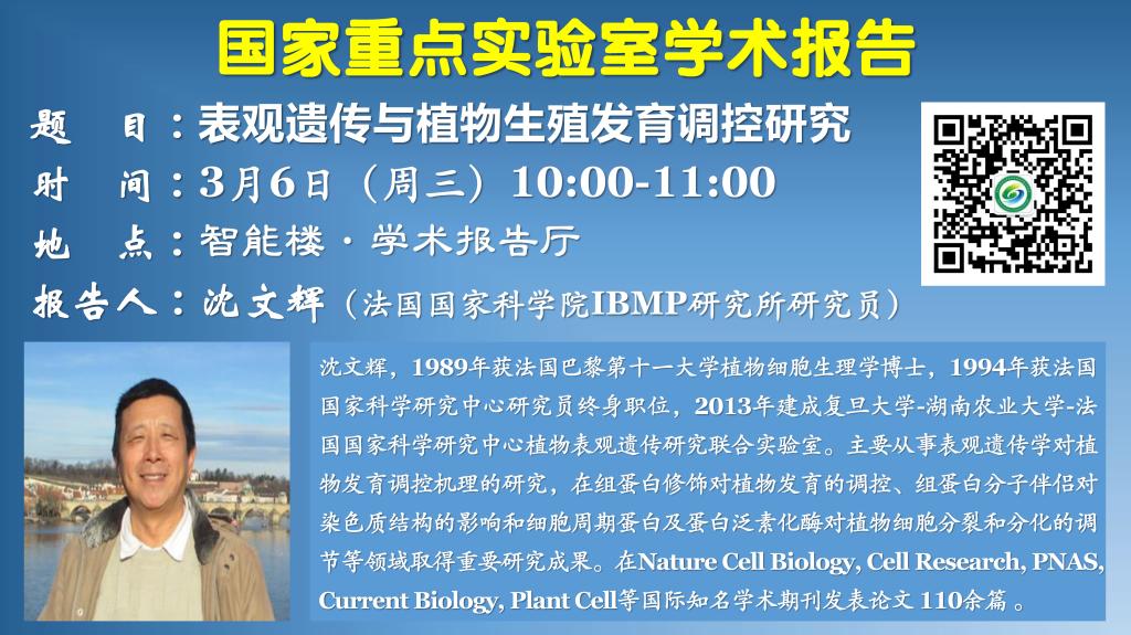 报告人:沈文辉(法国国家科学院IBMP研究所研究员)