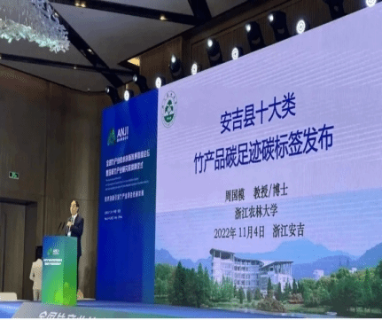 11月4日上午,在全国竹产业技术创新发展高峰论坛上,beat365官网和安吉县人民政府正式发布了全国首批十大类竹产品碳足迹碳标签。