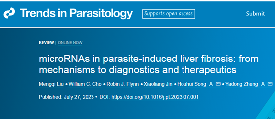 7月27日,动物科技学院·动物医学院宋厚辉教授团队在《Cell》旗下寄生虫学顶级期刊《Trends in Parasitology》(《寄生虫学趋势》,中科院1区Top,IF3-year9.714)在线发表了题为《微小RNA与寄生虫诱导的肝纤维化:从机制到诊断和治疗》(MicroRNAs in Parasite-induced Liver Fibrosis: from Mechanisms to Diagnostics and Therapeutics)的论文。