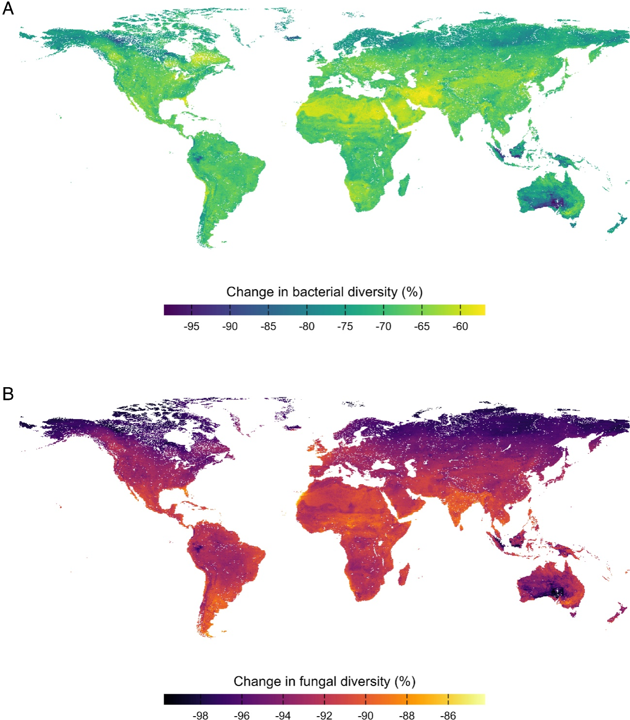 图. 基于102项升温实验数据整合的最劣情景升温对土壤微生物多样性的影响