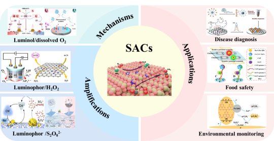 本文综述了SACs在ECL传感领域的最新进展:首先概述“自上而下”与“自下而上”制备方法,并依据活性位点与载流子特性对SACs进行分类;随后重点阐述了SACs在原子尺度增强ECL信号的机理及其作为ECL共反应加速剂的应用。最后,论文总结了SACs在ECL传感器领域发展的三大关键方向:合成更高效、高选择性的SACs,阐明更多的ECL体系信号放大机制,拓展SACs的应用前景。
