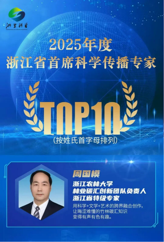 周国模教授入选2025年度浙江省首席科学传播专家TOP10