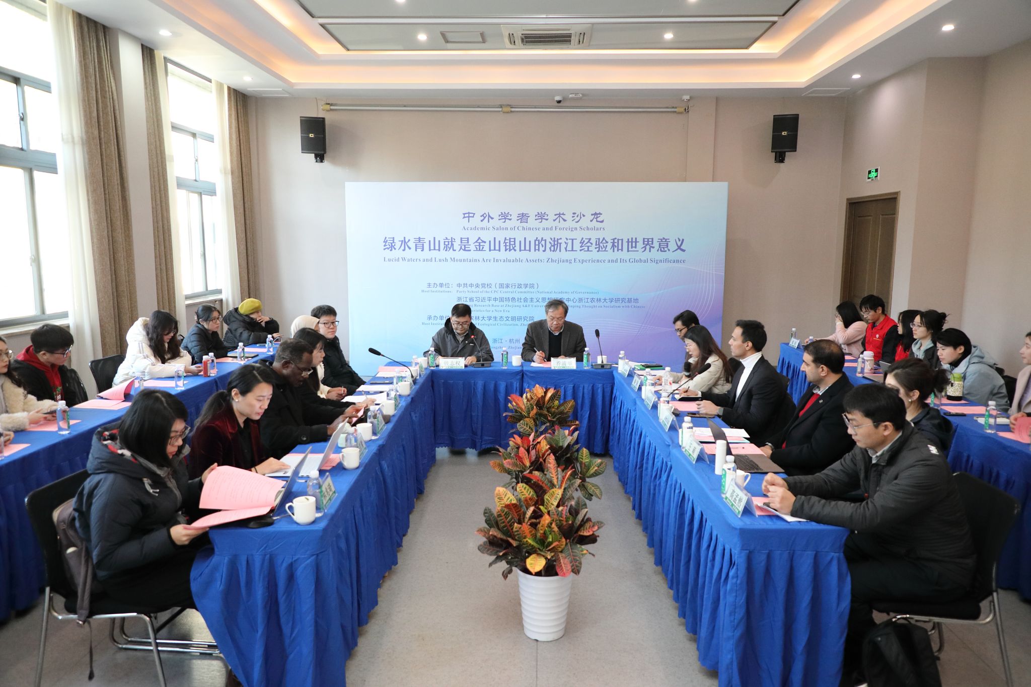 11月19日,由中共中央党校(国家行政学院)与浙江省习近平新时代中国特色社会主义思想研究中心beat365官方网站研究基地联合主办,beat365官网生态文明研究院承办的“中外学者学术沙龙:绿水青山就是金山银山的浙江经验与世界意义”在衣锦校区举行。本次活动是由国务院新闻办公室、中共中央党校、中国社会科学院和北京大学共同主办的“全球南方现代化论坛”平行论坛“现代化进程中的生态环境保护”组织的学术考察活动。