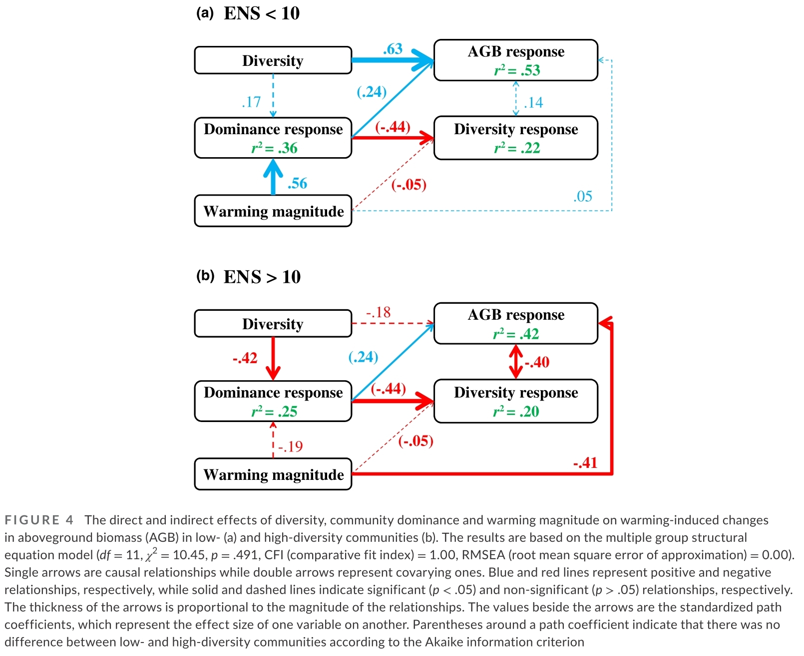 该研究发现:在所有影响因子当中,植物多样性是影响草地生态系统生产力增温响应的最重要因子;在多样性较低的系统中,生产力的增温响应随多样性逐渐增加,在多样性较高的系统中,生产力的增温响应随多样性逐渐减小;植物多样性对草地生产力增温响应的非线性特征,决定了在全球变暖情形下植物群落调控生产力的机制存在本质差异。