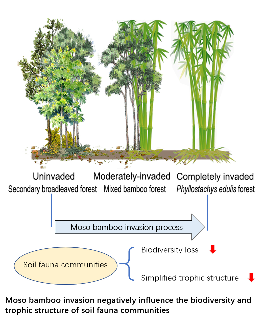 近日,beat365官网林生院森林保护学科森林昆虫团队在国际知名刊物《Science of the Total Environment》(IF=6.551),在线发表了最新研究成果“The diversity of soil mesofauna declines after bamboo invasion in subtropical China”。该研究证实了亚热带地区毛竹入侵次生常绿阔叶林导致中型土壤动物的多样性显著下降,这些转变将会负面影响凋落物初期分解等生态系统功能。