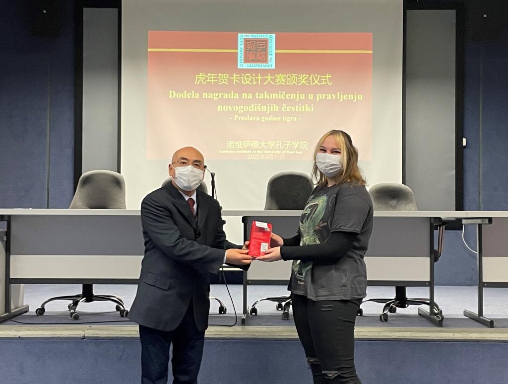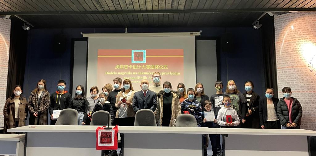当地时间3月14日,塞尔维亚诺维萨德大学孔子学院举办了虎年贺卡设计大赛颁奖仪式。鉴于当地疫情形势,此次活动仅邀请了获得一、二、三等奖获奖者,以严格遵守当地防疫要求,将聚集人数控制在五十人以下。