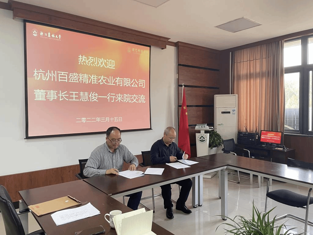 3月15日,园艺科学学院与杭州百盛精准农业有限公司就加强产学合作进行座谈交流,并签订院企战略合作框架协议。园艺科学学院党委书记何振波、副院长臧运祥,杭州百盛精准农业有限公司董事长王慧俊、总经理王奇文,观赏园艺学科师生代表等参加交流。