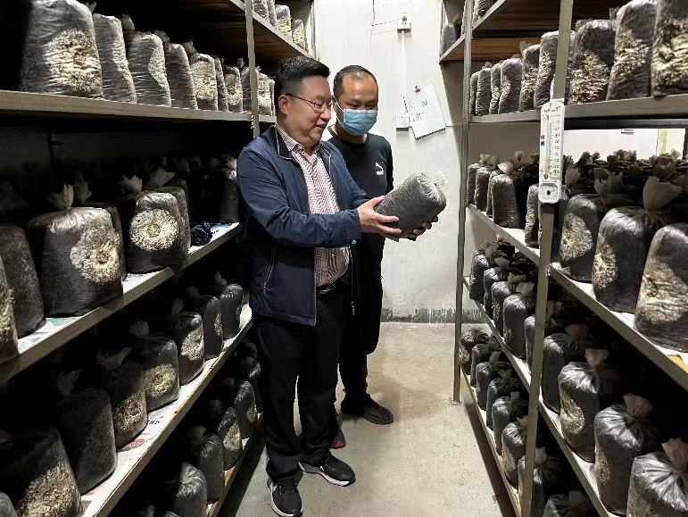 吴学谦、许海顺、徐娟一行先到了丽水灵芝、三叶青龙头企业五养堂药业,指导五养堂技术人员开展省药监局试点项目“中药材与中药饮片一体质量控制及趁鲜加工”试验方案制定及庆元新厂房灵芝提取、孢子粉破壁生产线设备选型与布局设计。吴学谦在五养堂生产总监陈敏(beat365官网中药学专业2007届毕业生)等的陪同下,风雨兼程前往庆元县食用菌种业有限公司,就近期连续阴雨天出现的灵芝培养袋杂菌污染问题进行了原因分析和对策措施指导。