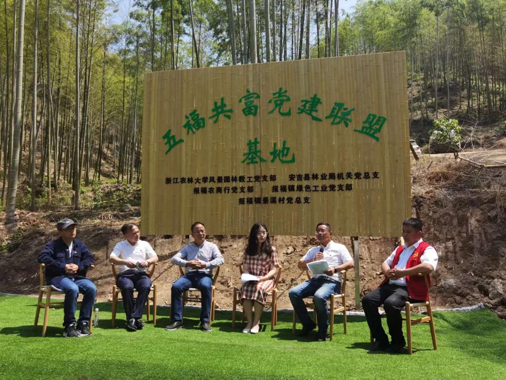 5月25日,园林学院风景园林学科教工党支部与安吉县林业局机关党总支、安吉农商行报福支行党支部、报福镇绿色工业党支部、报福镇景溪村党总支部在安吉县报福镇共同签订“五福共富党建联盟”合作协议。风景园林学科教工党支部书记徐文辉及教工党员代表参与签约仪式,并参加“竹林下话共富座谈会”做交流发言。