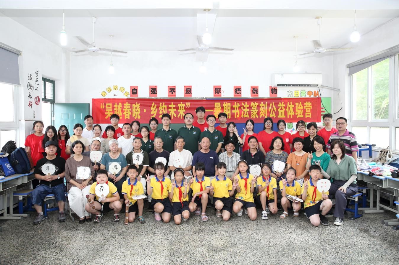 7月13日,实践团协助云林书院团队为高虹小学同学们带来“吴越春晓,乡约未来”书法课。老师们在课堂上教导孩子们写下《钱氏家训》中的“存心宽厚”“勤俭为本”,帮助孩子们树立良好的品行。志愿者团队勤恳、踏实协助书法教学工作,他们认真努力的态度得到了老师们的一致赞赏。