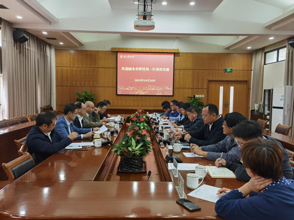 10月28日上午,丽水市科技局局长翁伟荣一行来校交流,社会合作处处长刘兴泉,丽水市科技特派员及竹产业相关专家参加座谈会。