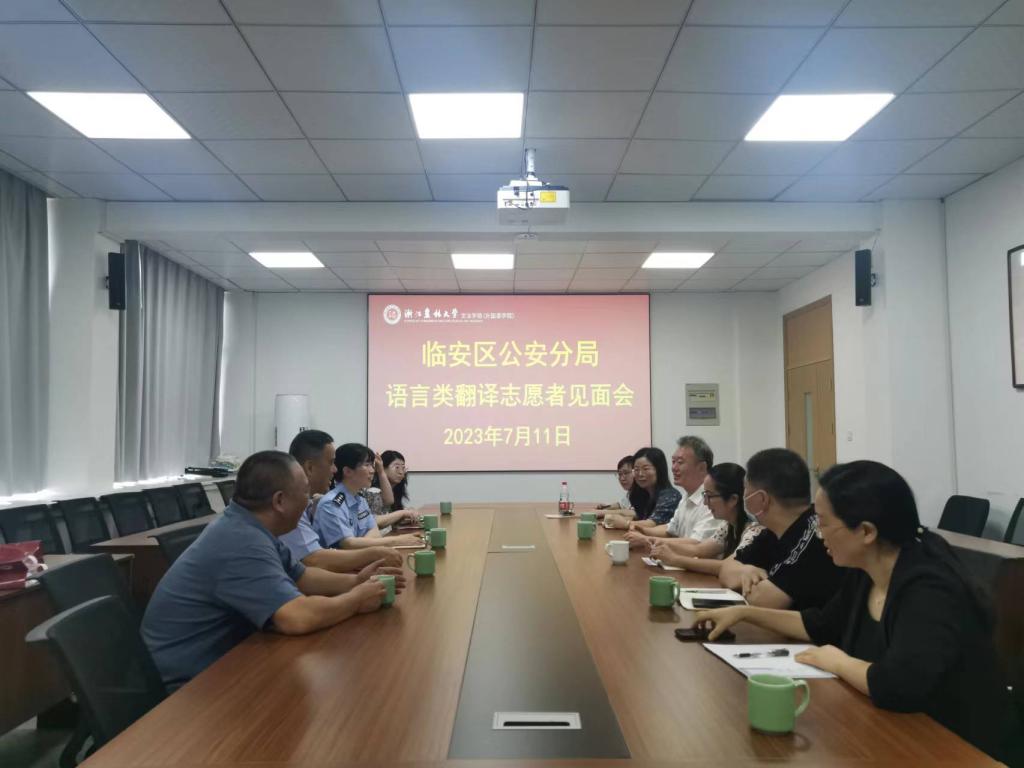 会上,学院组织语言翻译志愿者教师与临安区公安分局的有关人员,就服务杭州亚运临安赛区翻译服务的具体事项进行了深入交流。