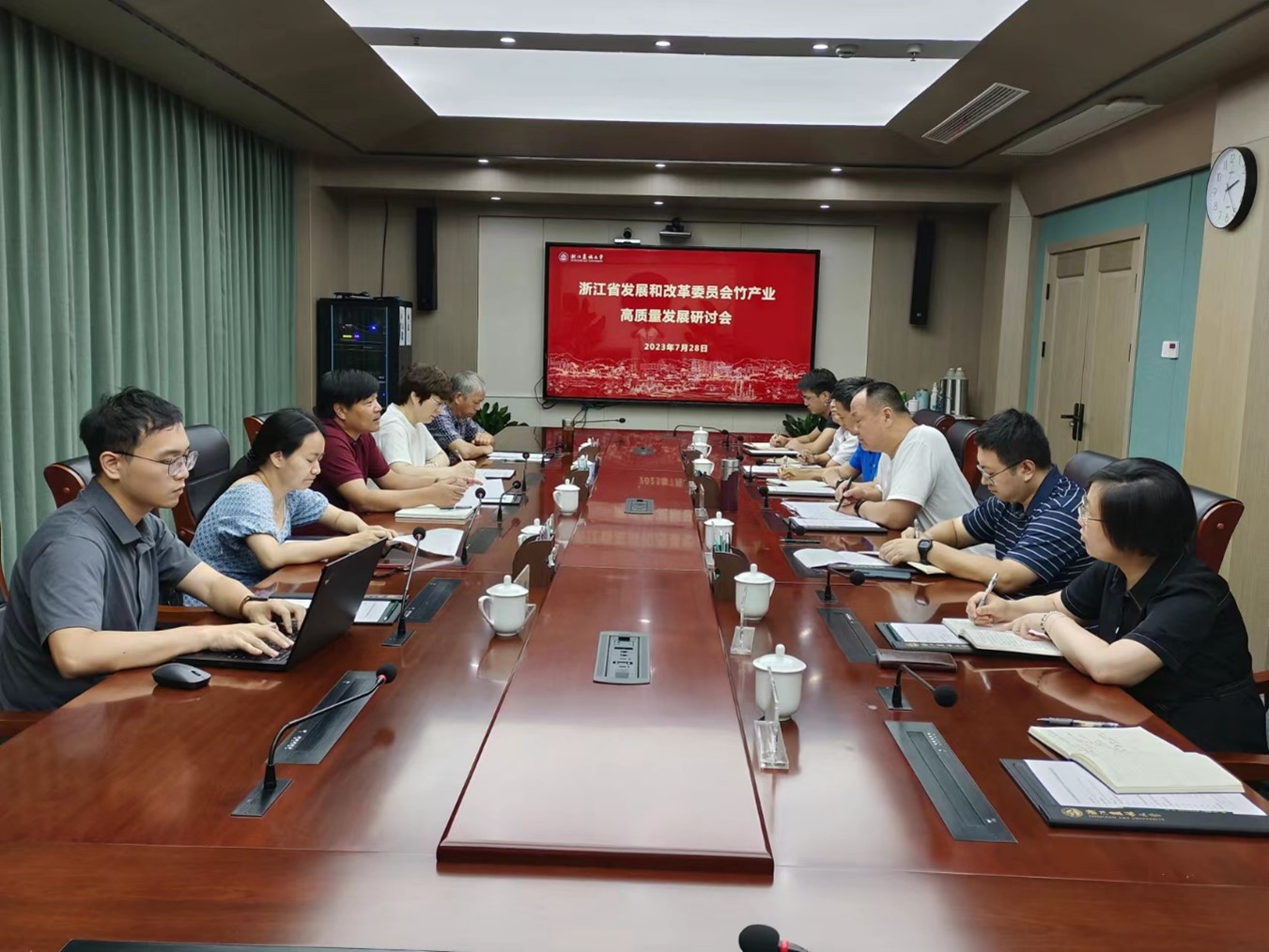 7月28日,省发改委发展战略和规划处处长邵振红一行来校调研竹产业高质量发展工作。beat365官网竹子研究院、科技处相关负责人及学院专家代表参加了调研交流会。