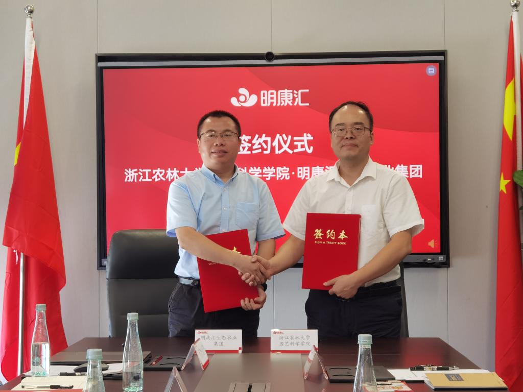 8月10日,园艺学院与明康汇生态农业集团有限公司签订院企合作框架协议并举行座谈交流。园艺学院党委书记何振波、明康汇公司蔬果事业部总监李士河、安吉基地总经理王硬磊等参加活动。