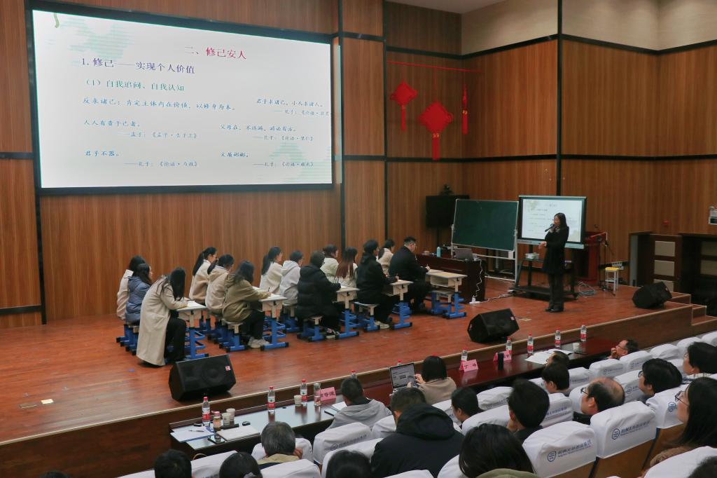 11月30日,由临安区教育局和马院联合举办“同说中华非遗 同上思政金课”大中小学思政教育一体化教学研讨会,在杭州天目外国语学校举行。马院副教授、省级名师工作室负责人宫瑜主讲了《同说中华非遗——中国传统文化中的主题精神》,学院全体师生参加。临安区中小学思政教师综合能力提升培训班学员,白玉县思政教师及临安区各中小学思政教师线上近200人参加。