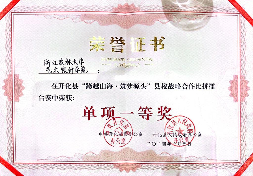 近日,艺术学院教授王丽参加开化县2023年“跨越山海•筑梦源头”县校战略合作比拼擂台赛,为学院斩获单项一等奖和团队二等奖的好成绩。