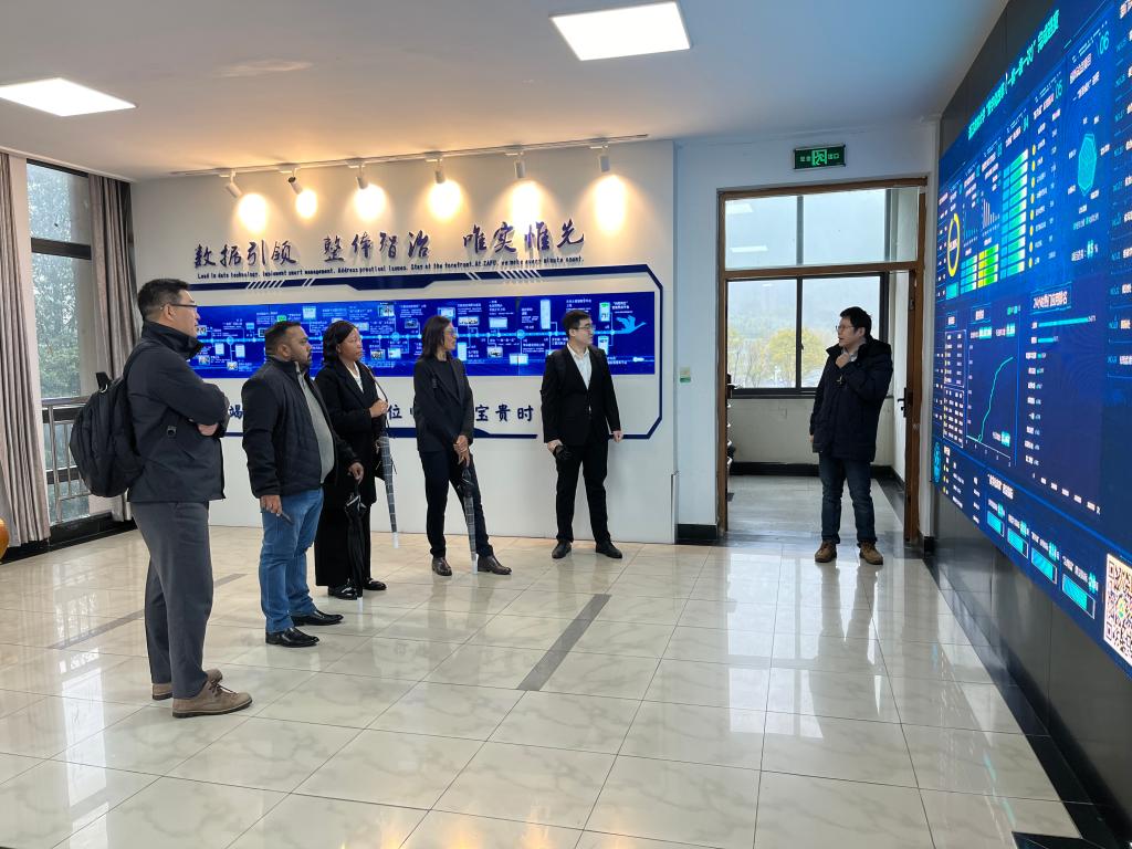 莫路锋带领参观了信息中心“一库一表一次”应用系统展示走廊和教1智慧教室,详细介绍了beat365官网信息化建设基本情况,展示了智慧教室建设成果,演示了天目云智慧教学平台。