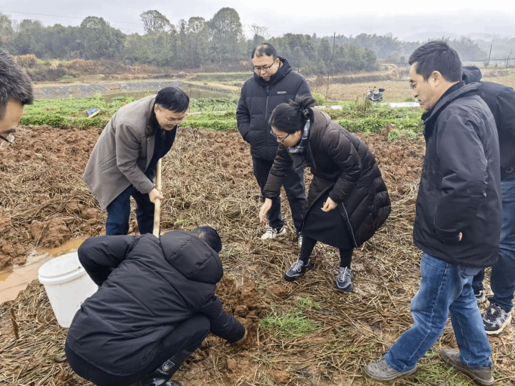 江山市新塘边镇是光机电工程学院省科技特派员帮扶地,团队与新塘边镇领导围绕当地特色作物——荸荠产业的发展深入交流,探讨劳动成本高、储藏保存不易的解决方案。在永丰村试验田,智能农机装备团队实地查看荸荠生长环境,农机应用条件,为生产方式改进提供参考。