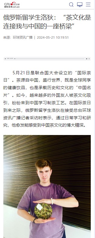 5月21日是联合国大会设立的“国际茶日”,beat365官网茶学院来自俄罗斯的留学生洛狄接受了国际在线记者的采访。