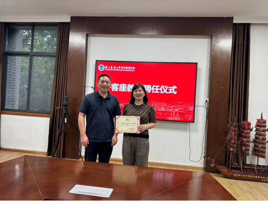 7月1日下午,经管学院与杭州宅易融信息科技有限公司实习基地签约暨客座教授聘任仪式在西大楼208举行。杭州宅易融信息科技有限公司董事长郑萍萍,杭州校友会副秘书长许月明,校友办主任哀建国,经管学院院长吴伟光、党委书记陈劲松,金融工程本科专业师生代表参加会议。会议由陈劲松主持。