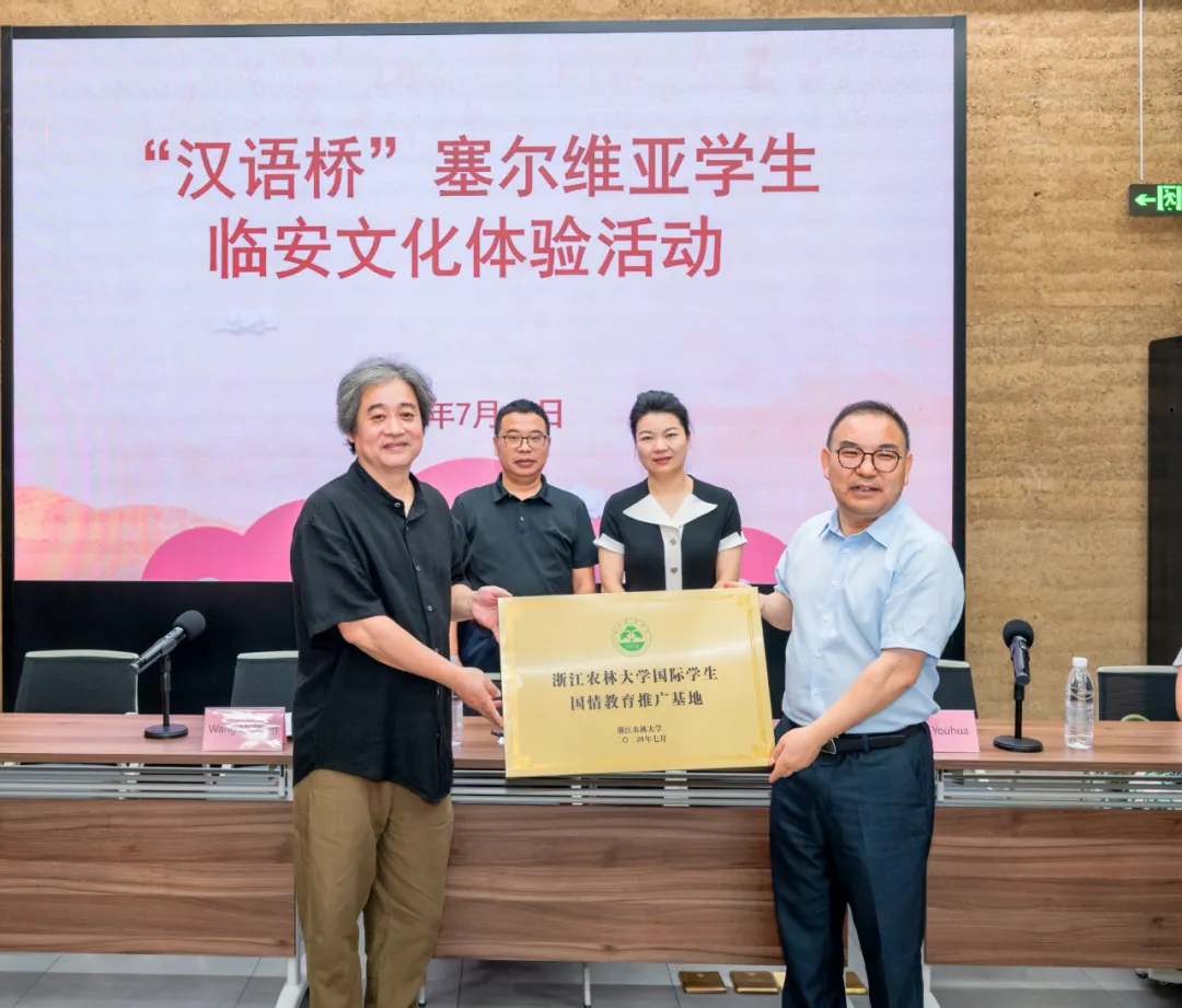 国教学院院长赵有华对临安区文联推动中塞文化交流所作出的努力表示感谢,并提出今后将充分发挥国际生的独特作用,更好地把吴越文化和临安向世界各地进行推介。赵有华给临安美术馆授予“beat365官方网站国际学生国情教育推广基地”的牌匾。