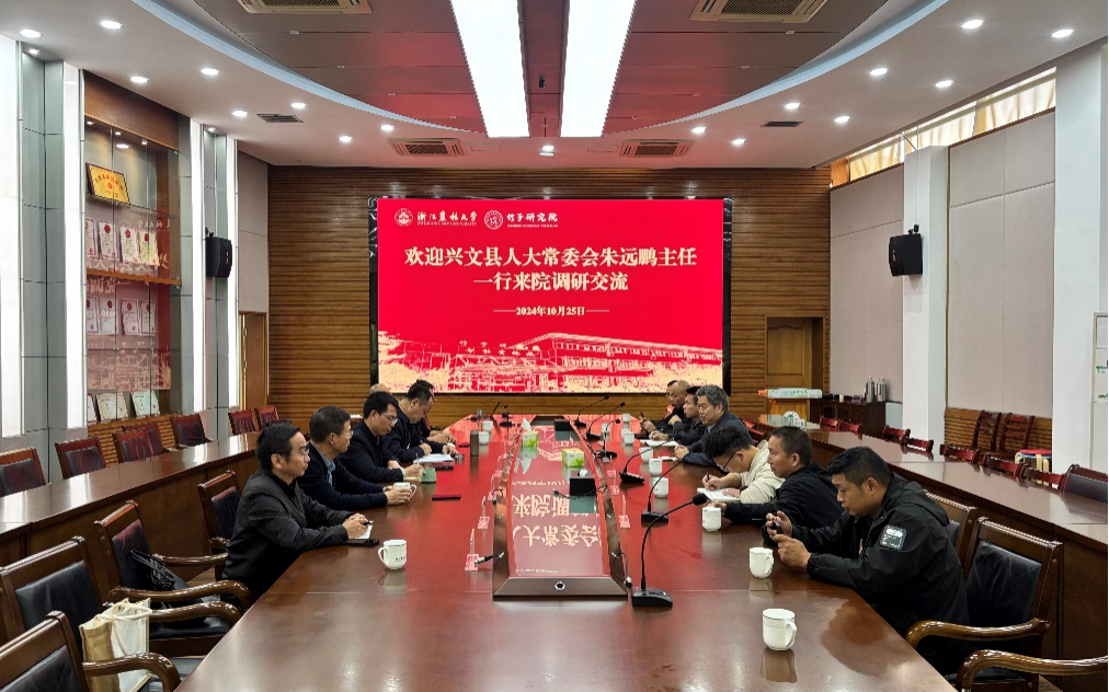 10月25日,兴文县人大常委会主任朱元鹏一行来竹研院调研交流,竹研院相关负责人,教授代表张文标、黄景达等参加座谈。座谈会由竹研院党总支书记周能寿主持。临安区农林技术推广中心相关专家、笋竹加工企业代表等参加了活动并座谈。