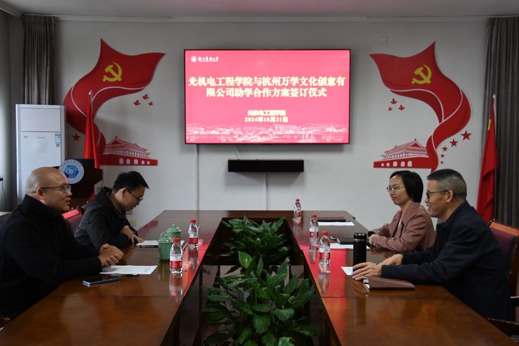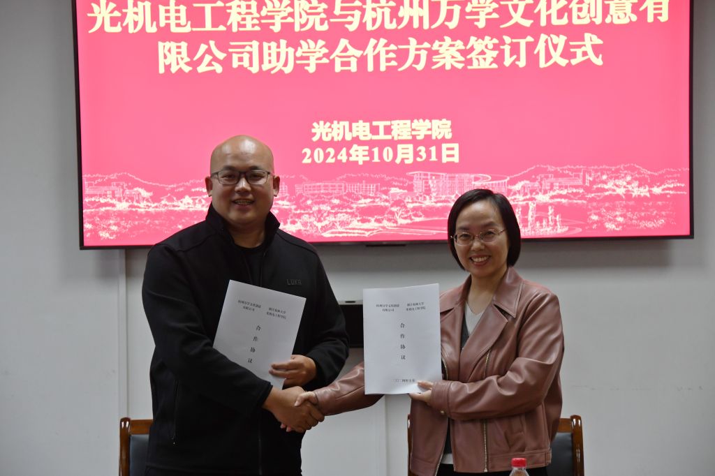 会上,双方就未来合作的方向和内容进行了深入交流,并达成共识。随后,双方代表签订了beat365官方网站教育基金捐赠协议与院企合作协议,进一步夯实合作。为表彰杭州万学文化创意有限公司对光机电学院教育工作的支持与贡献,学院特向其颁发了“金牌合作伙伴”纪念牌。