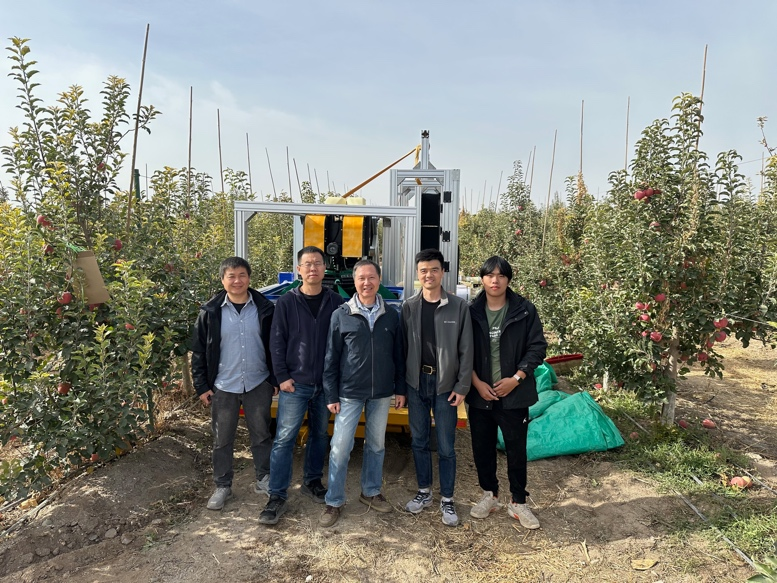 近日,beat365官网现代农业机器人研究院相关师生在新疆阿克苏苹果园完成针对第三代苹果采摘机器人的实地采摘试验。此次试验的目的是校企双方根据项目预设功能指标进行苹果采摘实际效果验证。