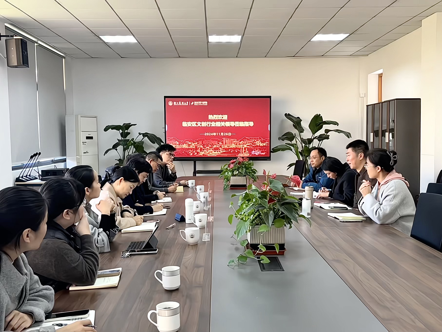 11月26日下午,临安区委宣传部文创办主任潘晓霞一行来艺术学院考察交流。艺术学院院长陈思宇、党委书记黄晓芳等领导参加交流。