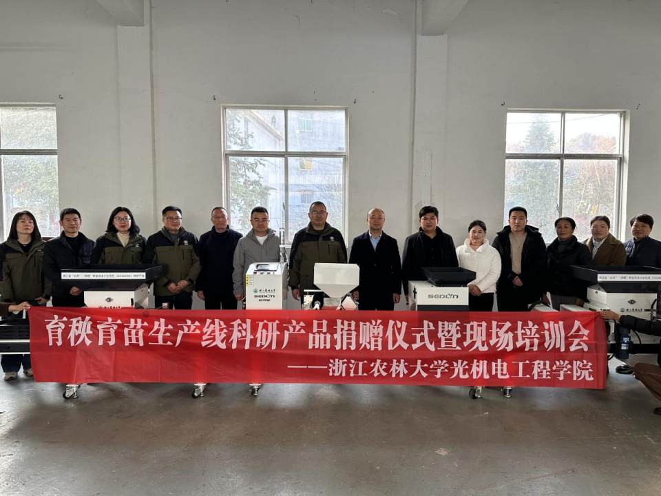 围绕前期校地合作过程中华埠镇提出的农业机械化发展瓶颈、农机化项目布局和现代化农事服务中心发展的迫切需要,光机电工程学院智能农林装备团队迅速行动,优化调整校地合作点位,聚力服务,向华埠镇捐赠浙江省“尖兵”“领雁”项目科研成果——育秧育苗流水线一套,并现场开展育秧育苗流水线应用技术的培训,助力华埠镇提升育秧机械化水平。