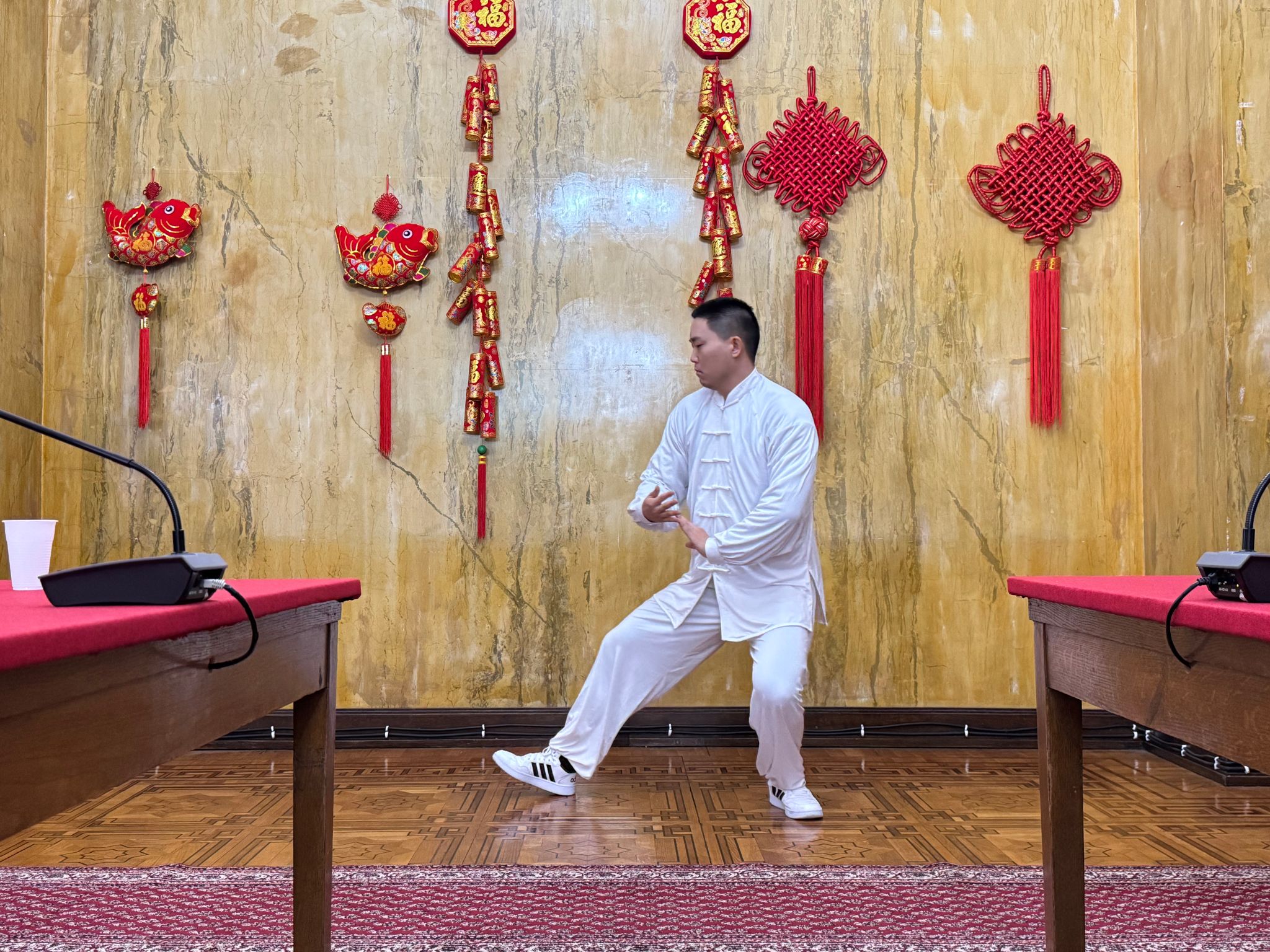 诺大孔院教师为此次春节活动带来了精彩节目。豪迈奔放的藏族舞蹈《拉岗踏歌》传递出了浓郁的民族风情,惊艳众人;太极拳表演那刚柔并济的一招一式,尽显中华武术数千年传承的精髓;塞语歌曲《雪花》那熟悉的旋律和饱含感情的演唱,为节目增添别样风采。诺大孔院教师的精彩表演让在场嘉宾领略到中华文化的魅力,赢得了现场来宾们的阵阵掌声和不绝于耳的赞扬。活动现场洋溢着欢乐喜庆的节日氛围。