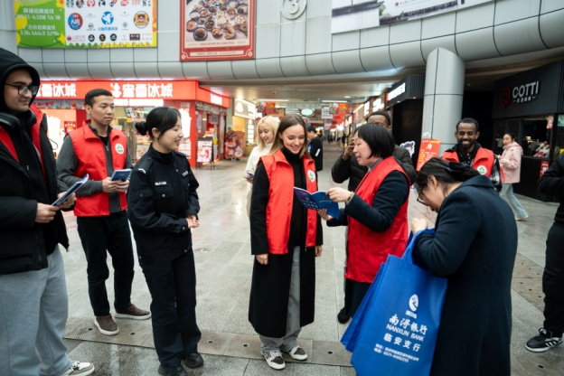 随后,锦城派出所警官针对国际生在华留学期间需要注意的法律法规,如治安法规、交通安全、依法信教、禁毒、签证制度等方面内容开展了法制教育,要求国际生自觉遵守中国的法律法规,尊重中国的社会风俗和习惯,积极融入当地生活,如遇到任何法律问题或困难,应及时向学校相关部门或公安机关寻求帮助。国际生还与民警一起前往社区街道,派发反诈宣传材料,开展了宣传志愿服务。