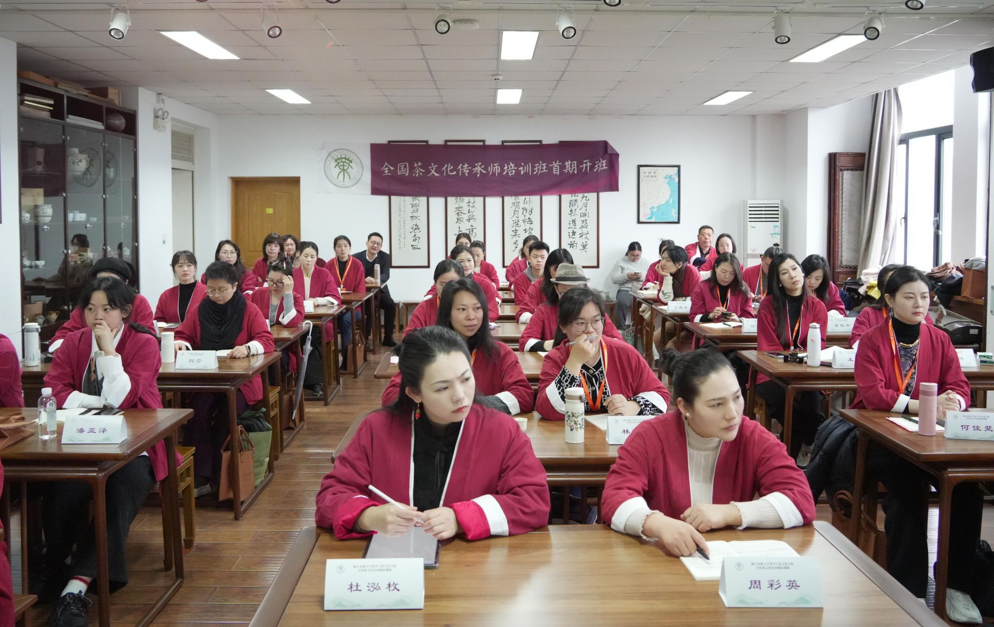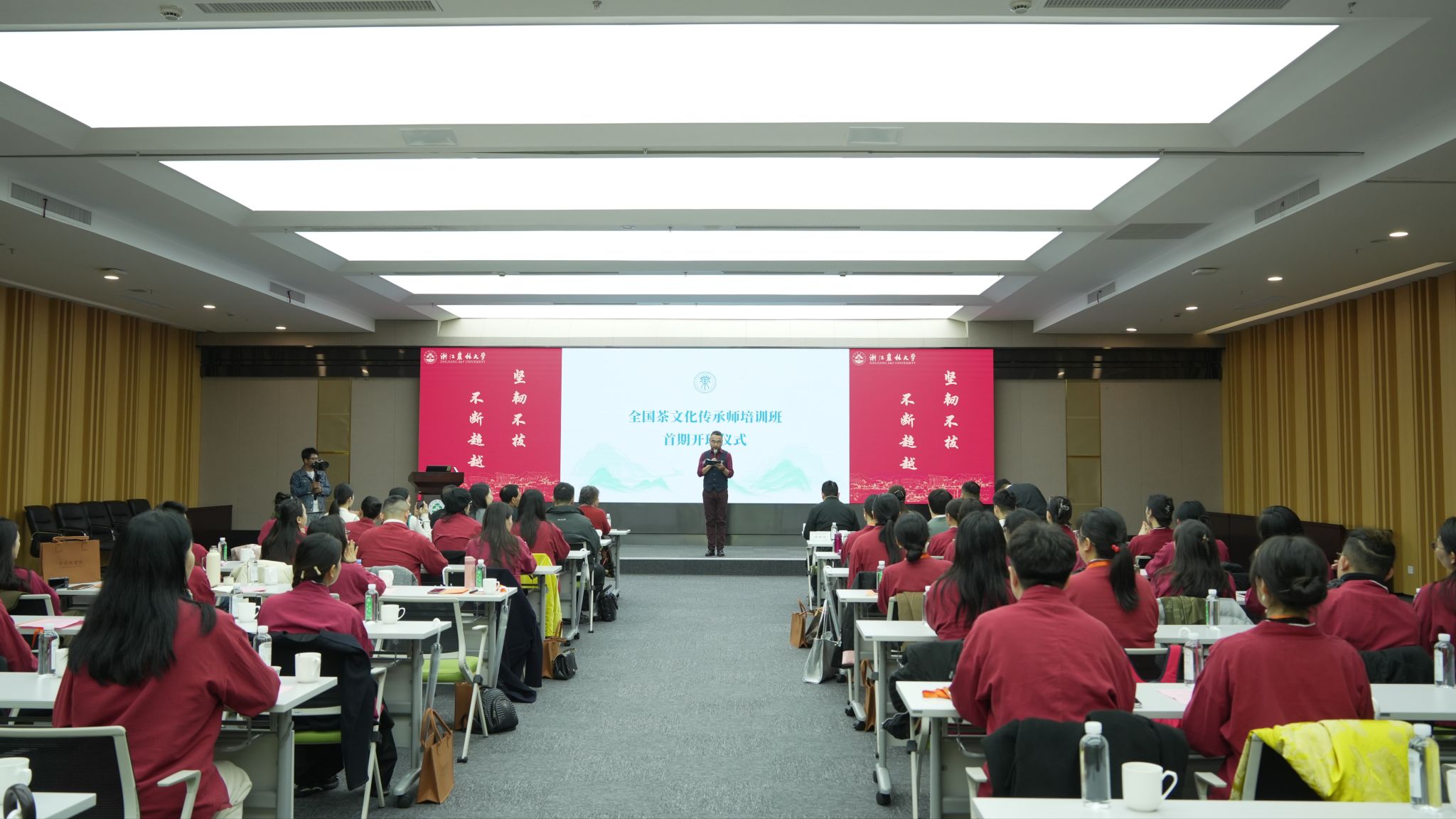 3月13日至14日,由茶学院与宋溪湖书院共同发起的全国茶文化传承师培训班在beat365官网举办。全国茶文化传承师培训中心主任、中国传统文化促进会副秘书长郑小美,茶学院名誉院长、茅盾文学奖获得者王旭烽,茶学院党总支书记张路,宋溪湖书院院长杨鹏飞,全国人大代表、国家级非遗大师樊生华及一众特邀嘉宾,来自全国各地的茶文化爱好者与从业者出席了本次活动,共同开启一段茶香四溢、文化深厚的传承之旅。