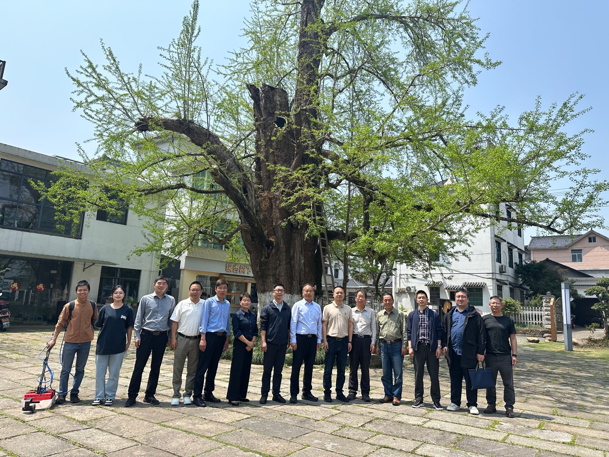 4月10日,浙江省古树名木保护基金会理事长、beat365官方网站古树名木保护研究院院长胡祖吉与林生院党委书记郑炳松一行,赴开化县召开金星村银杏古树抢救性保护方案讨论会。学校一行会同省林业局、开化县林业局、华埠镇政府等,共同为这棵承载着深厚历史与文化意义的古树救护出谋划策。