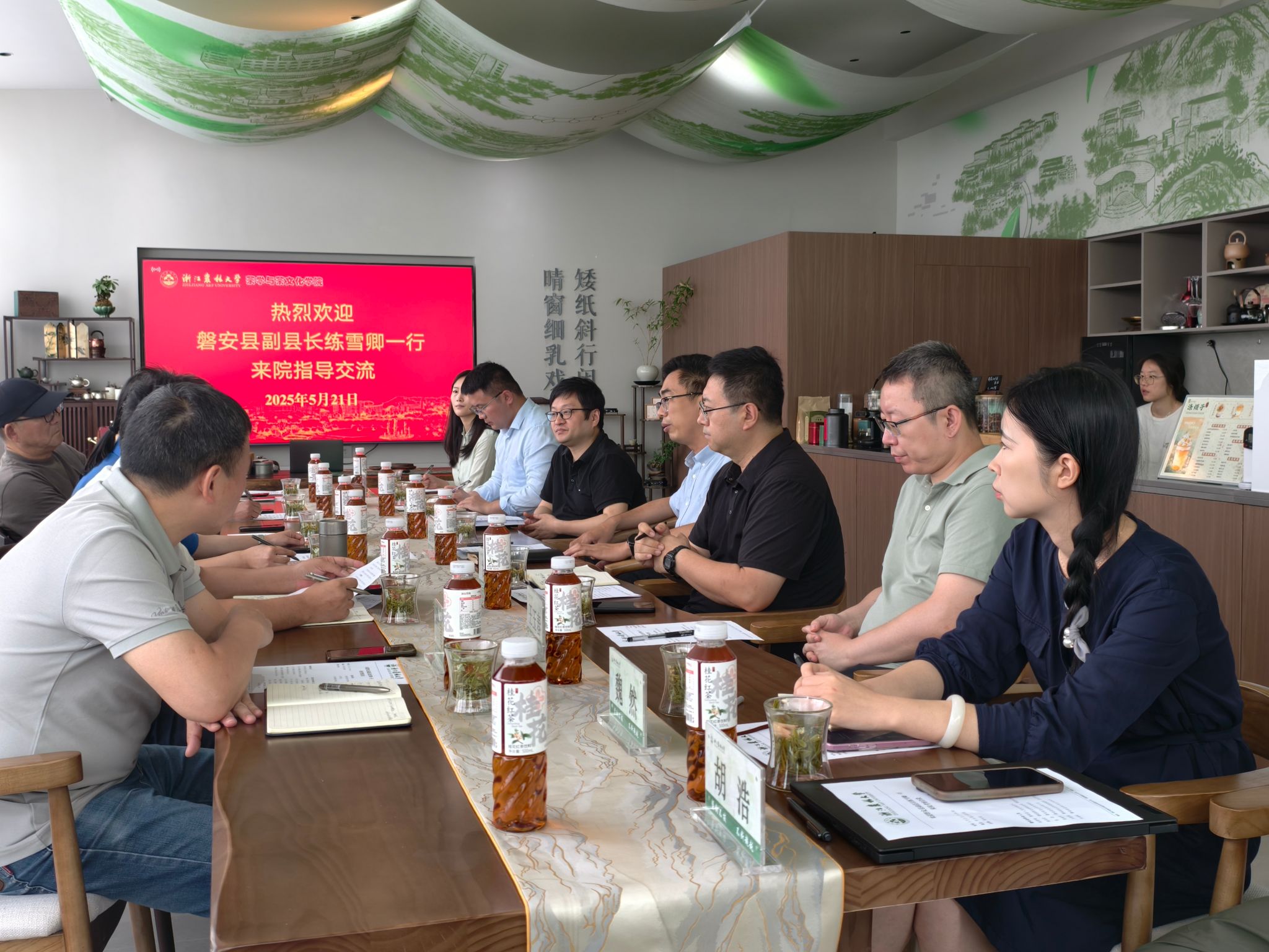 磐安县茶文化研究会、农业农村局、县府办,学校科技处、合作处、茶学院、食健学院等有关负责人参加了座谈会。