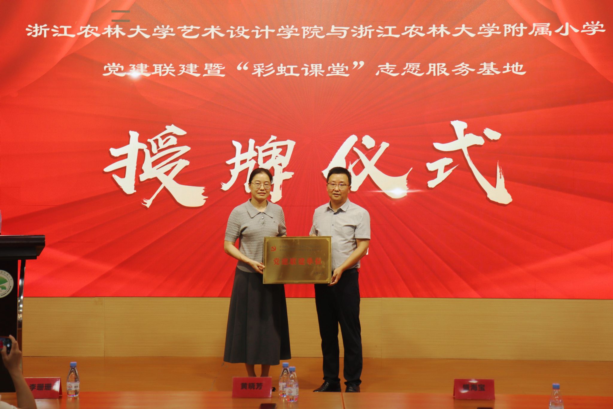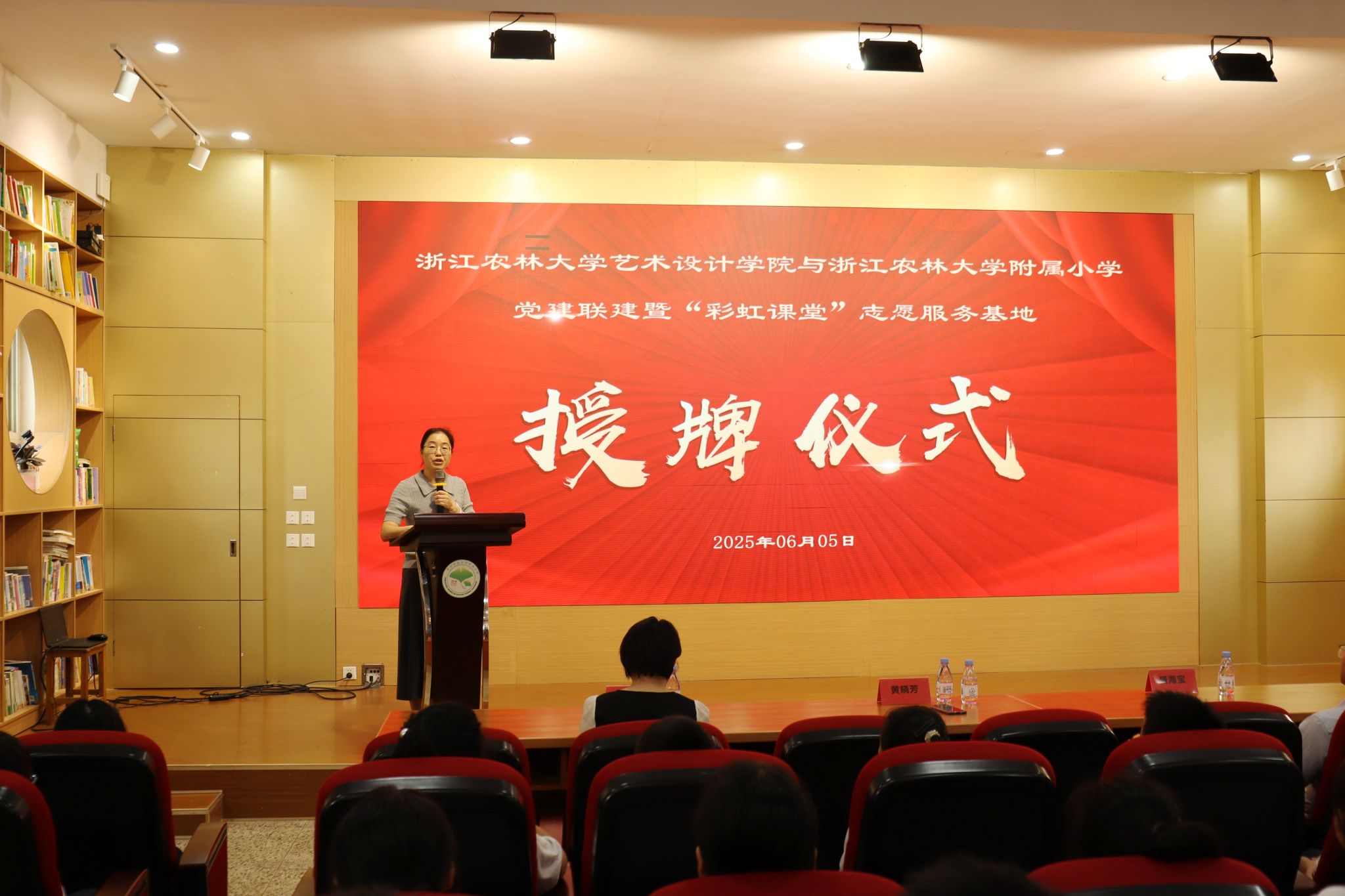 6月5日,艺术学院与beat365官方网站附属小学举行党建联建暨“彩虹课堂”志愿服务基地授牌仪式。艺术学院党委书记黄晓芳、农林大学附属小学校长盛海宝出席并致辞,教师代表、大学生志愿者代表、农大附小共300余人参加活动。