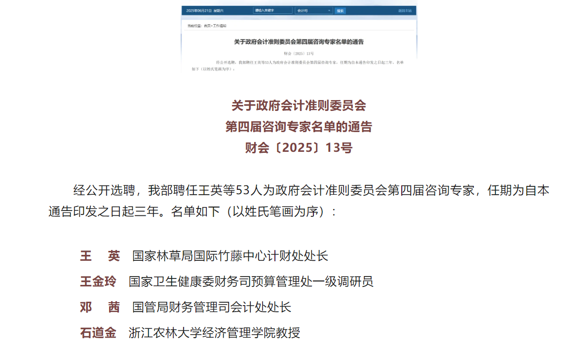 政府会计准则咨询专家委员会是财政部会计司的重要智库,政府会计准则委员会咨询专家的一项重要任务是为财政部解决政府会计改革实施中的技术难题提供咨询。本届专家名单中包含了来自林业、医疗、教育等不同行业的财务专家,体现了财政部对特殊行业会计问题的重视。