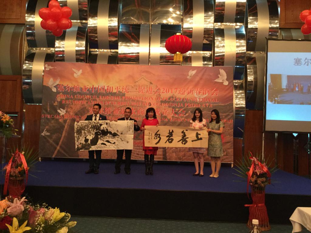当地时间2017年1月10日,塞尔维亚中国和平统一促进会迎新春酒会暨塞尔维亚丽水商会成立大会在贝尔格莱德举办。塞尔维亚总统顾问Jovan Roganovic、 国家资产管理局局长Jovan Vorkapic、中国驻塞尔维亚大使馆代办卢山等中塞嘉宾共三百多人参加了该活动。期间,诺维萨德大学孔子学院成功助力推广多彩的中国文化,深受大家的赞誉。