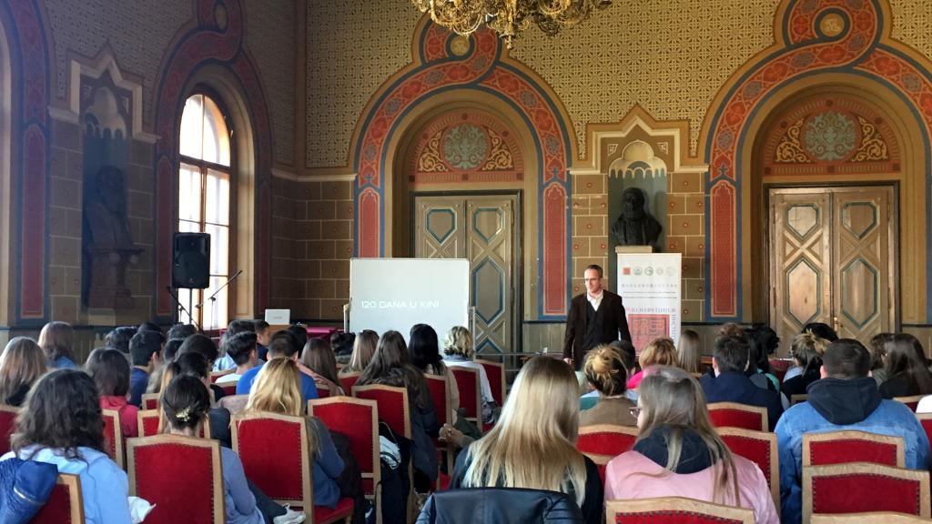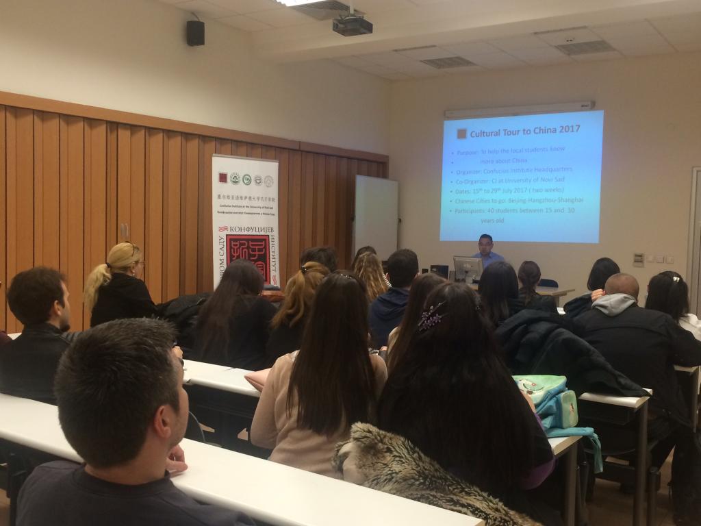 当地时间2月28日至3月3日,诺维萨德大学孔子学院先后在其下设的卡尔洛芙兹语言高中(Karlovci Grammar School)孔子课堂、约翰·奈斯比特大学(John Naisbitt University)和诺大哲学院等地举办了孔子学院项目介绍会和学生赴华留学体验分享会。