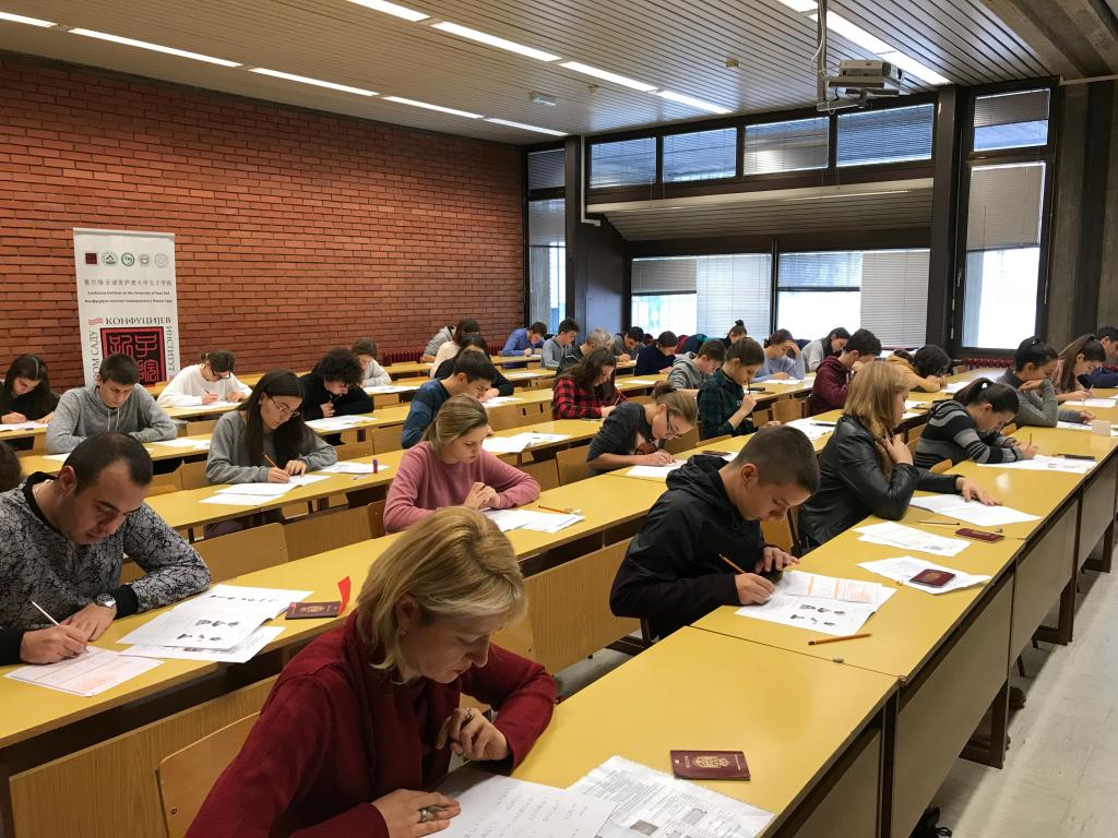 近日,诺维萨德大学孔子学院举办了YCT和HSK、HSKK系列考试,共有200余名当地学生和社会民众参加。本次考试属于不同层次、不同类型的国际汉语水平标准化考试,考查考生运用汉语进行交际的能力,其中,HSK可凭考试成绩申请孔子学院奖学金,并到中国进行学习交流。