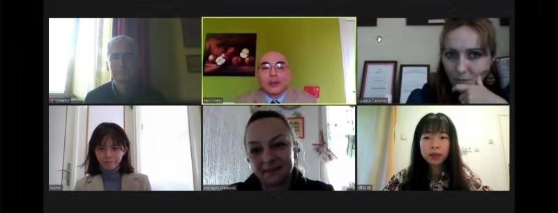 当地时间12月24日,塞尔维亚卡尔洛夫茨语言高中(Karlovic Grammar School)新任校长布兰科·斯托伊科夫(Branko Stojkov)与beat365官网合作共建的诺维萨德大学孔子学院中方院长陈晦及部分汉语教师举行线上会谈,讨论和安排孔子课堂相关的教学工作。本土教师丽碧彩·库达诺娃(Ljubica Cudanov)和玛丽安娜·马科维奇(Marijana Markovic)参加会谈。