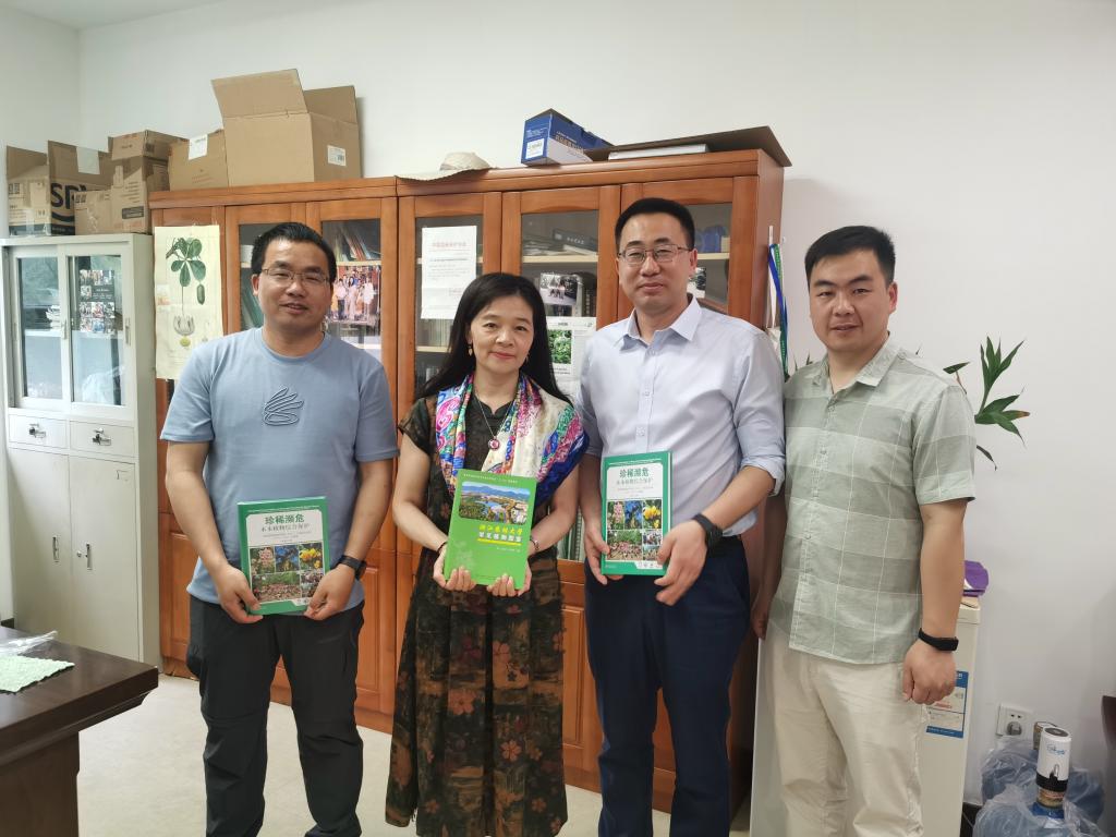 现场双方互赠书籍《珍稀濒危木本植物综合保护》、《beat365官方网站常见植物图鉴》。