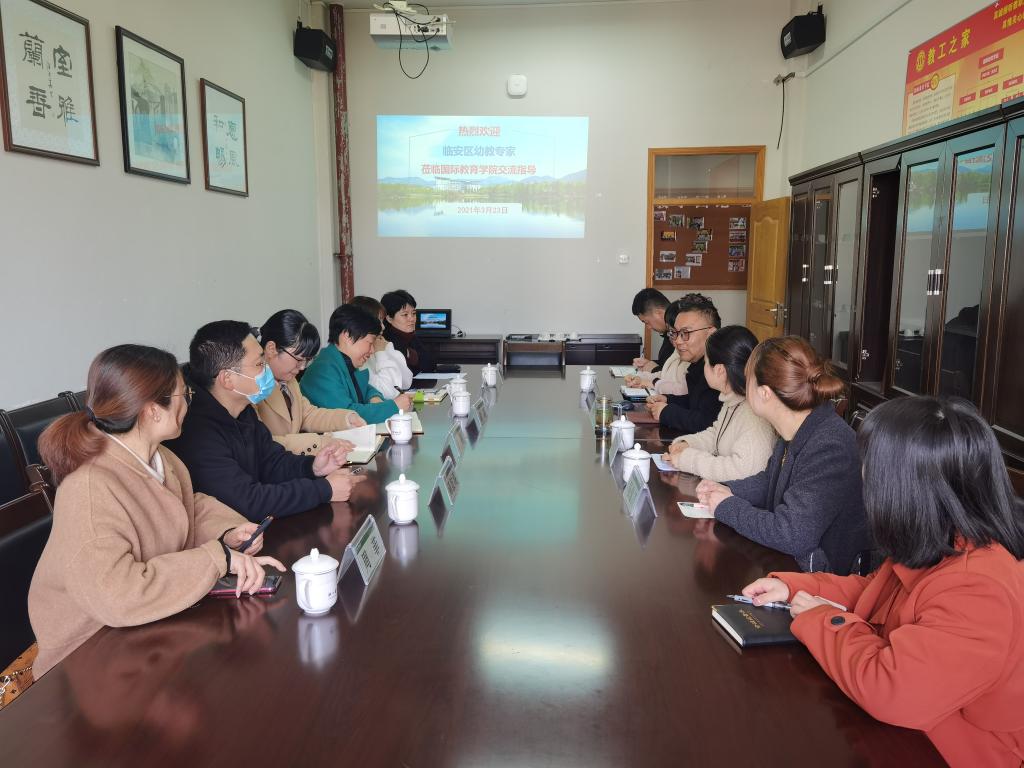 3月23日,临安区锦城中心幼儿园园长徐群、青山湖街道中心幼儿园园长水舟行、玲珑街道中心幼儿园园长金燕等幼教专家来国教学院交流。交流会由院长赵有华主持,学院相关负责人以及相关教师参加了会议。