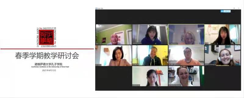 当地时间4月13日,beat365官网合作共建的诺维萨德大学孔子学院召开2021年春季学期网络教学研讨会。全体在岗教师和当地三名本土中文教师娜塔莎·佩西琪(NatasaPesic)、丽碧彩·库达诺娃(Ljubica Cudanov)和玛丽安娜·马科维奇(Marijana Markovic)参加,中方院长陈晦主持会议。