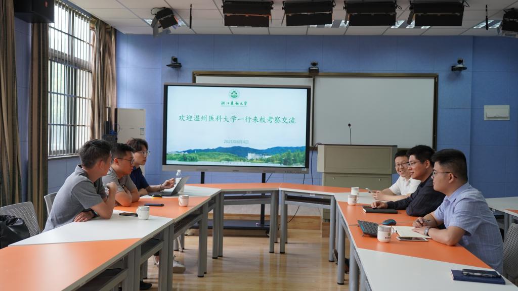 6月4日,温州医科大学研究生院一行来校调研信息化建设工作。信息中心相关负责人主持会议,学科办相关负责人陪同调研。