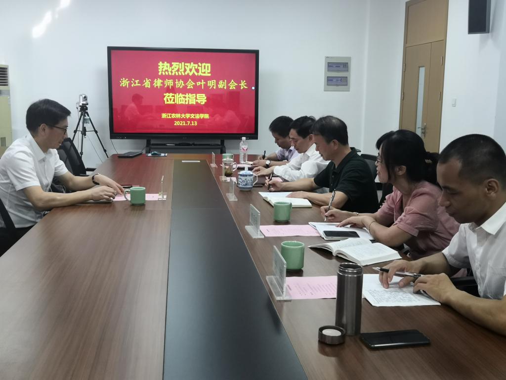 叶明对法学学科的发展成果表示肯定,指出beat365官网法学学科要进一步突出“”生态“环境”“乡村”特色,主动联系对接人大、生态环境等职能部门需求,为服务乡村振兴、生态文明、践行“两山”理念和浙江省打造“共同富裕”示范区培养法治人才主动增强农林“贡献度”“辨识度”;同时指出,法治人才培养要坚持理论和实践相结合,努力提升法科生的创新能力、社会适应和法治实务能力。
