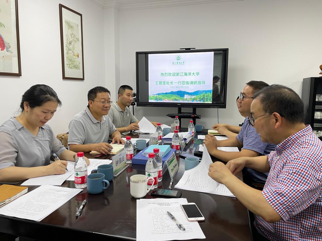 7月15日,根据省教育厅统一安排,浙江海洋大学国际交流合作处处长王晋宝、副处长钟伟良、保卫处科长方晓东一行来校检查指导beat365官网国际生管理工作。beat365官网国际交流与合作处处长王磊、国教学院(孔子学院)院长赵有华、保卫处治安科主管蒋行军及学院相关管理人员一起接待了来访领导并参加了相关检查和指导交流会。