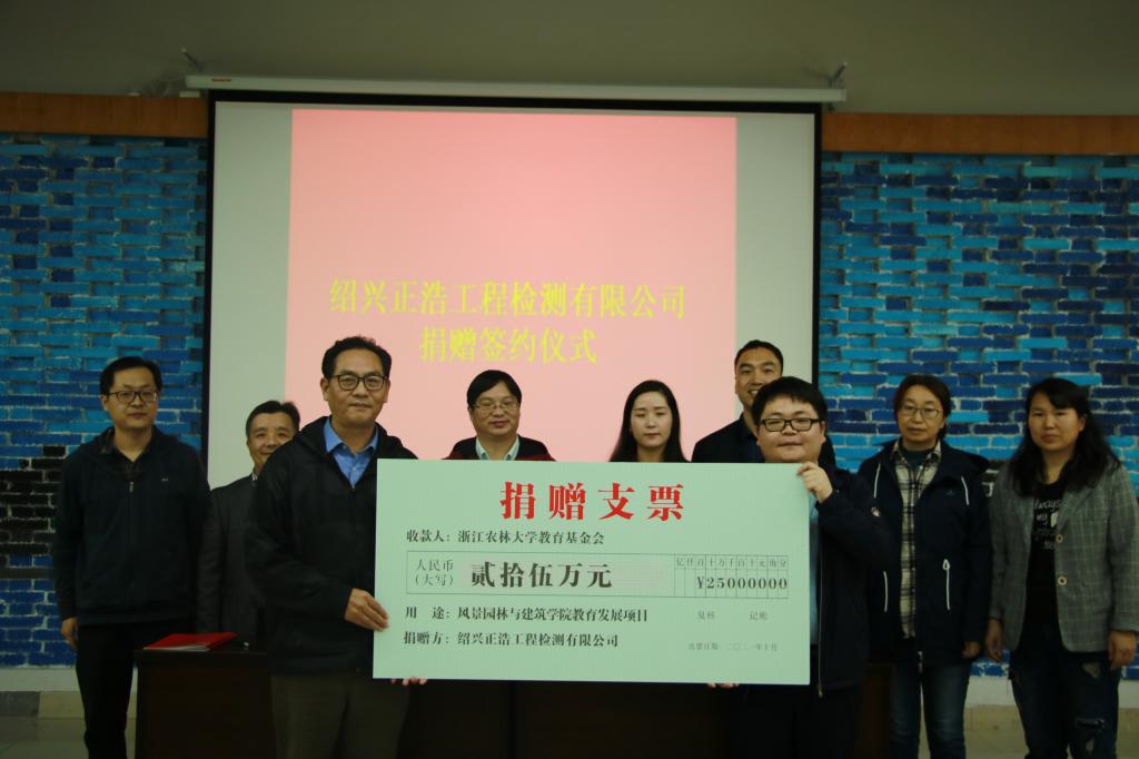 10月28日,园林学院与正浩工程检测有限公司捐赠签约仪式在beat365官方网站东湖校区举行。beat365官方网站校友办主任杨黎明,正浩工程检测有限公司总经理苗鸿浩及公司代表,园林学院党委书记王欣等出席签约仪式。